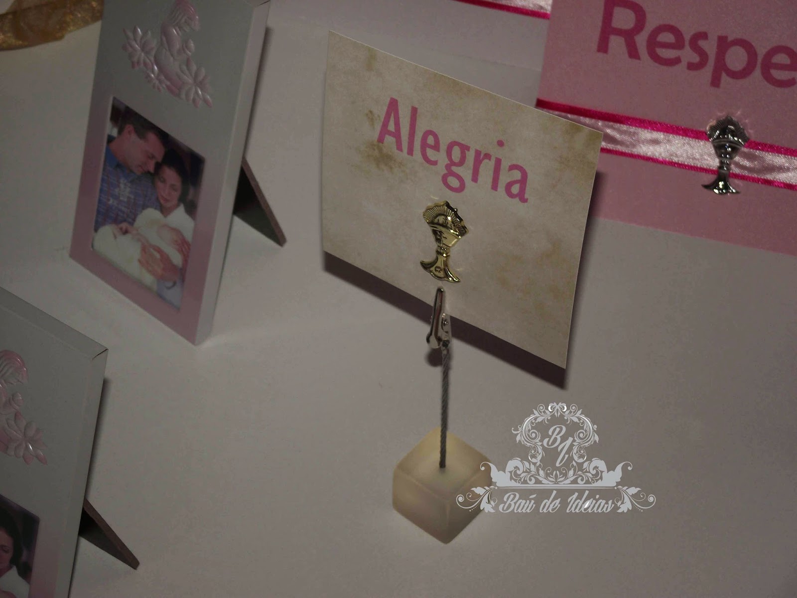 Marcador Mesa rosa/branco com cálice de Comunhão.