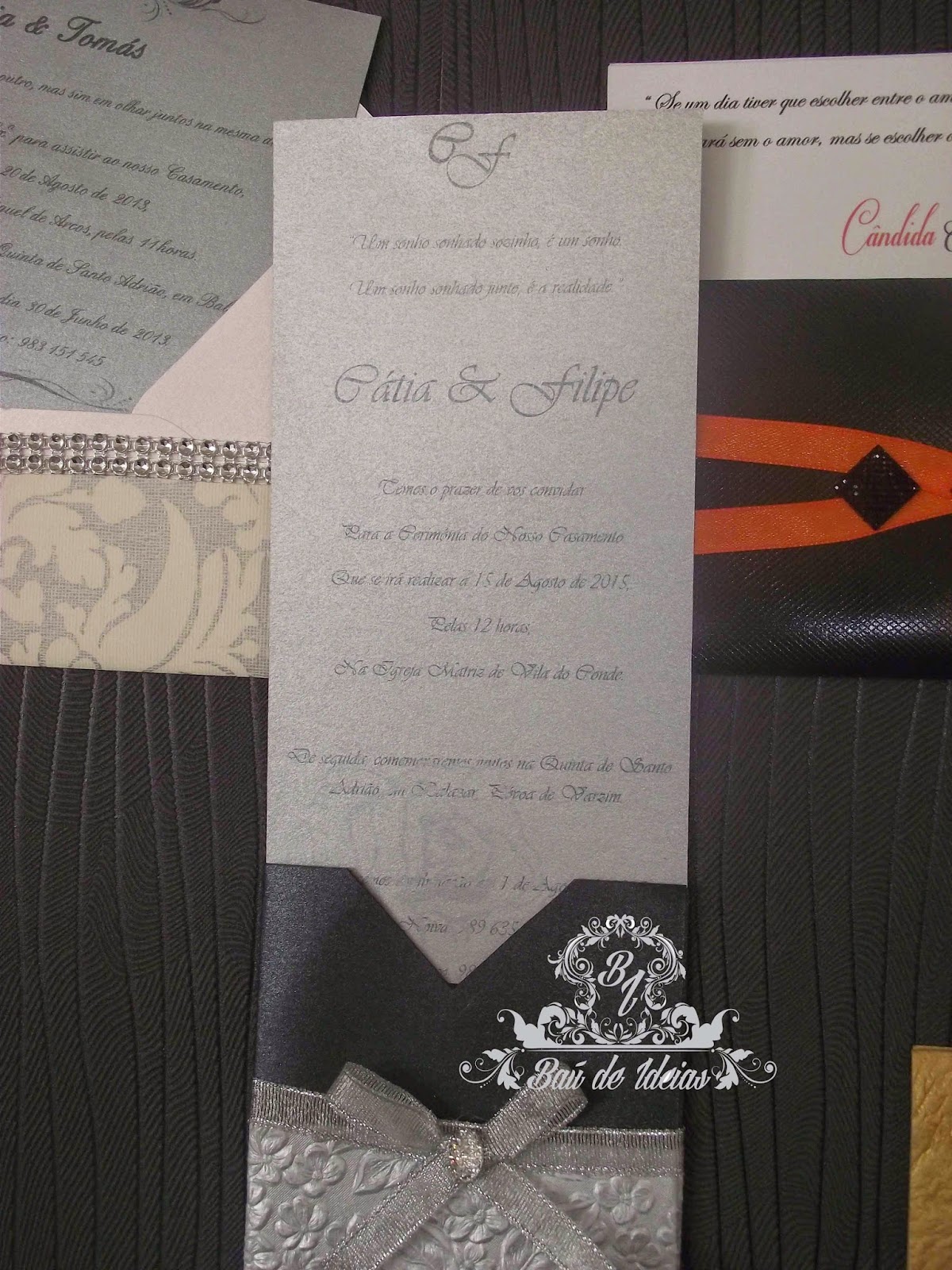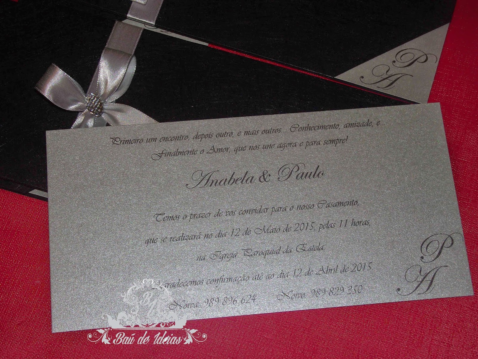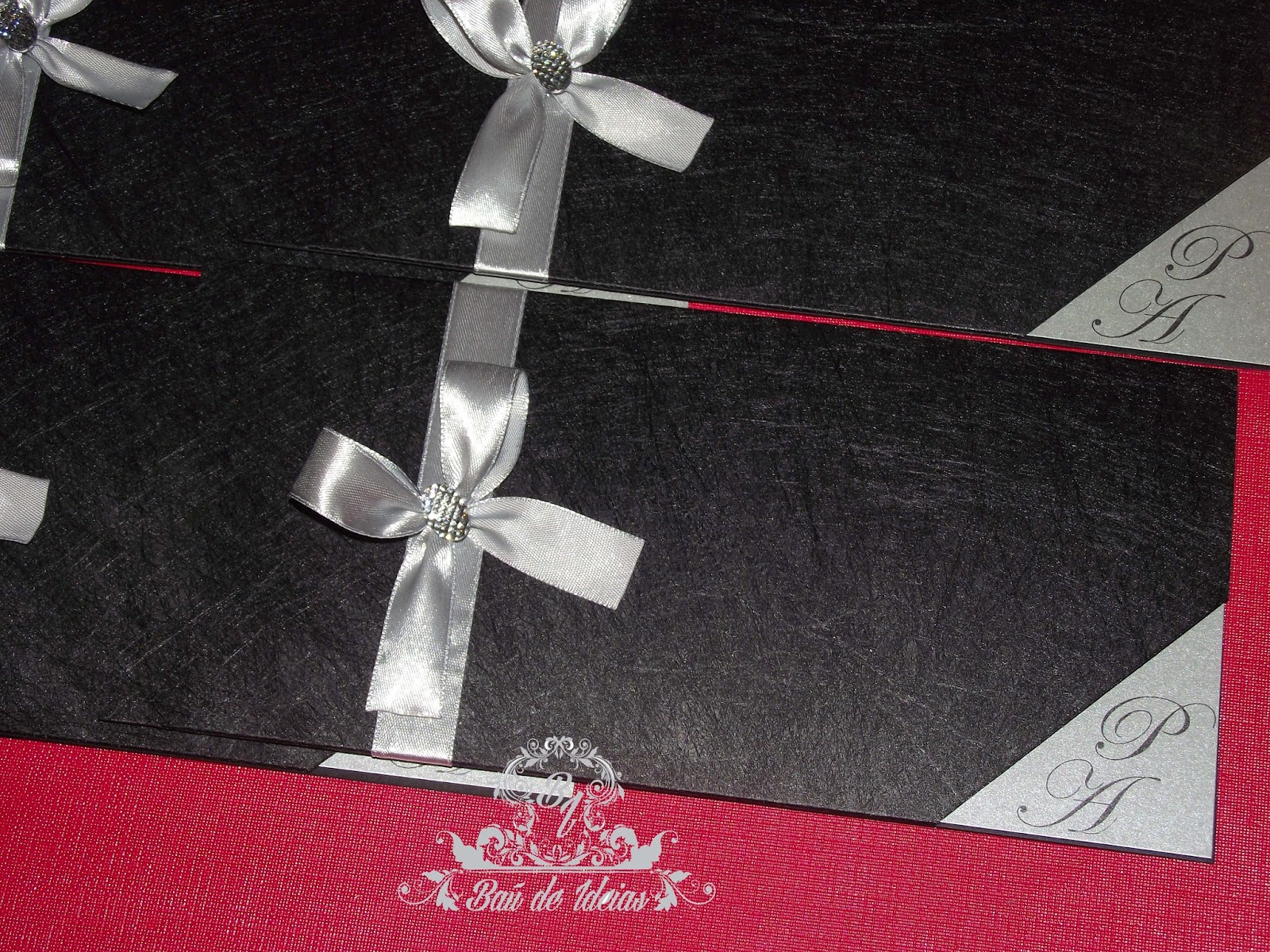 Convite de Casamento prateado e vermelho, com papel relevo.
