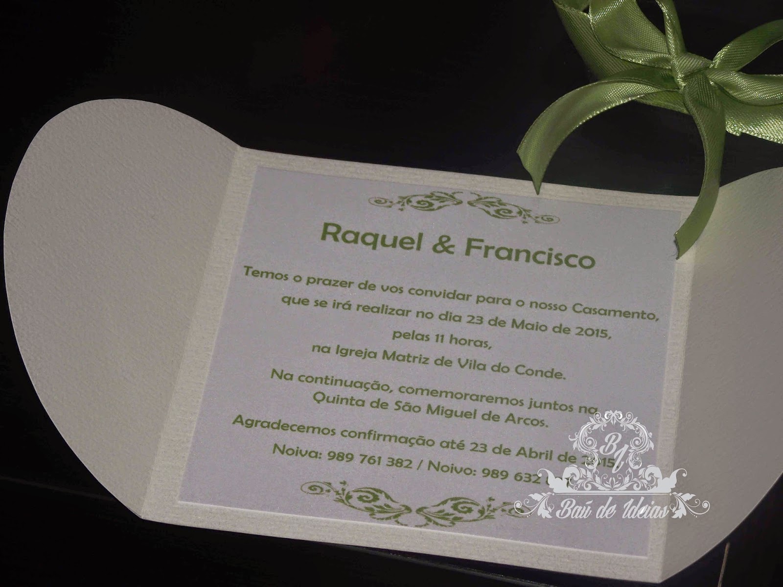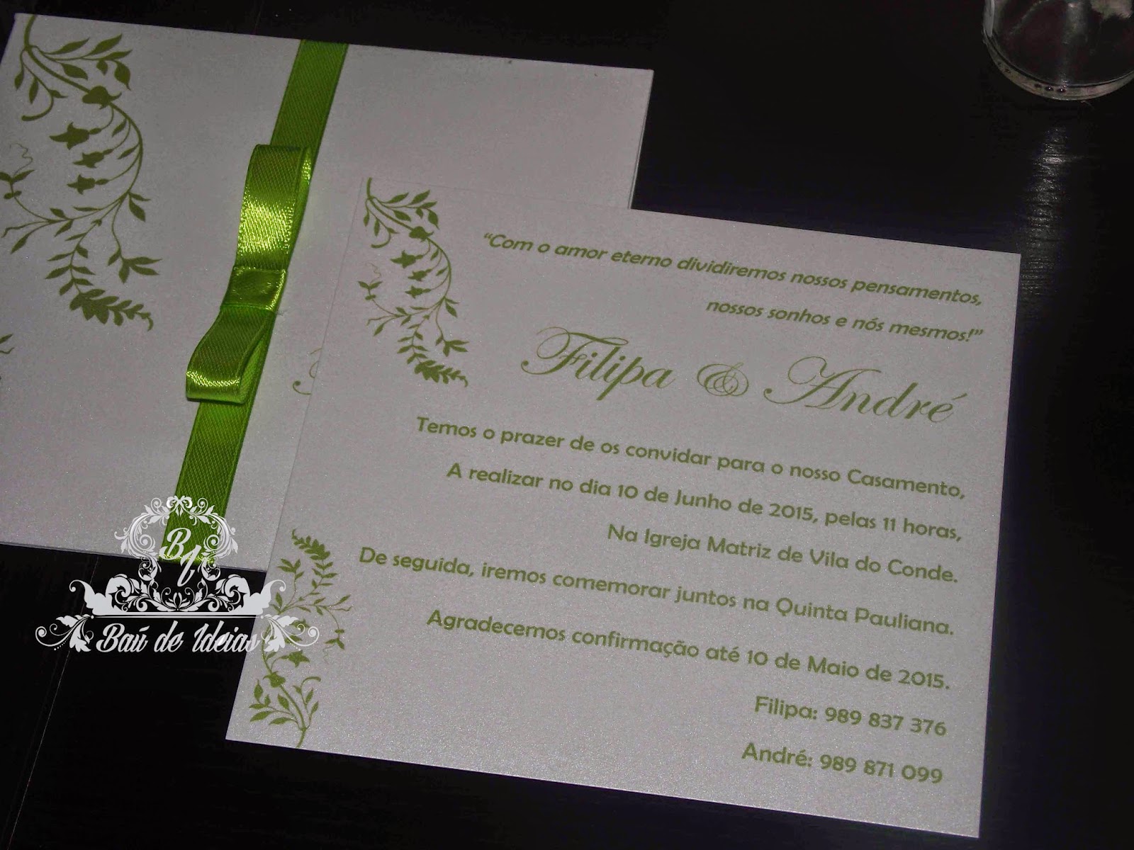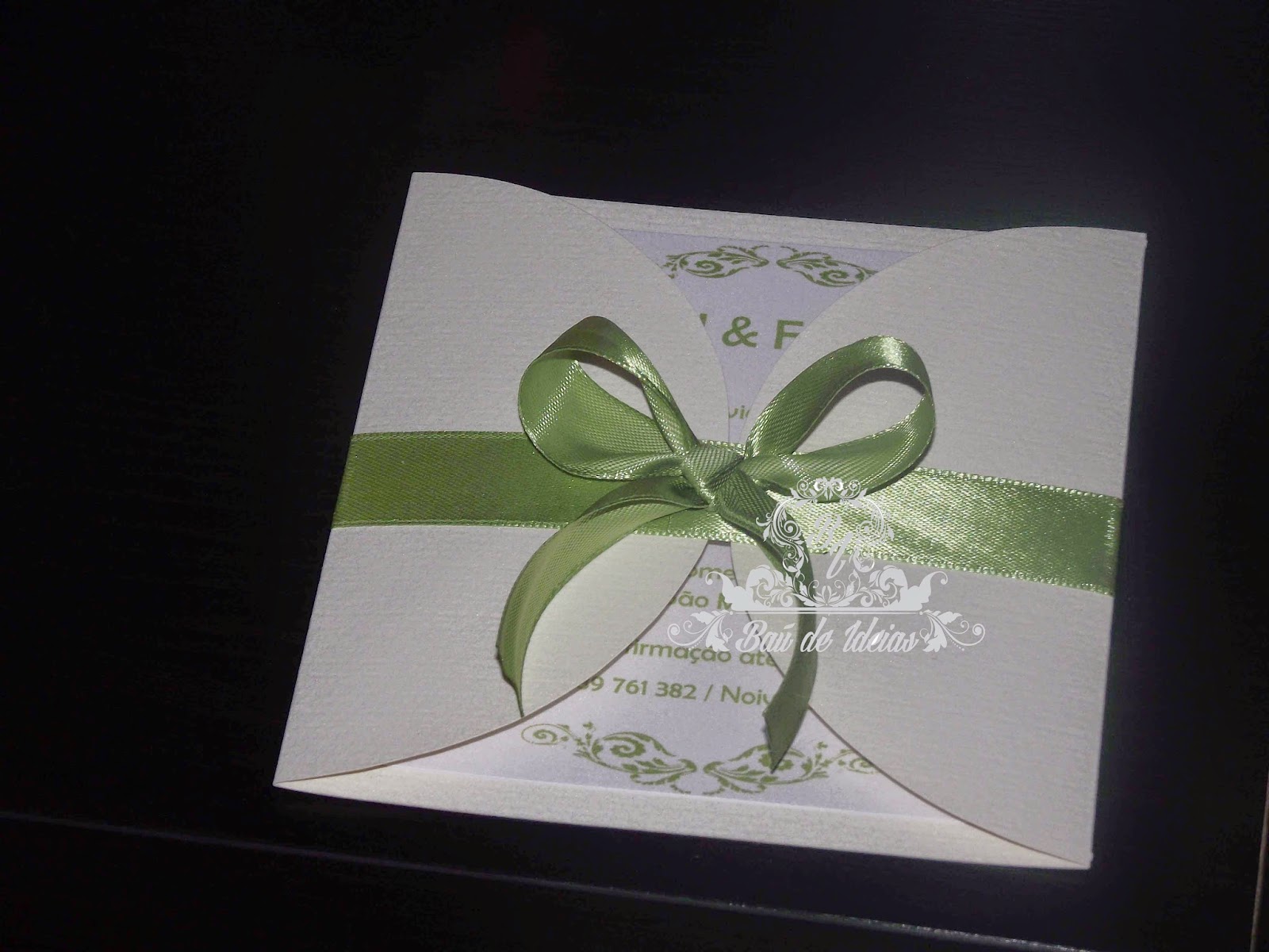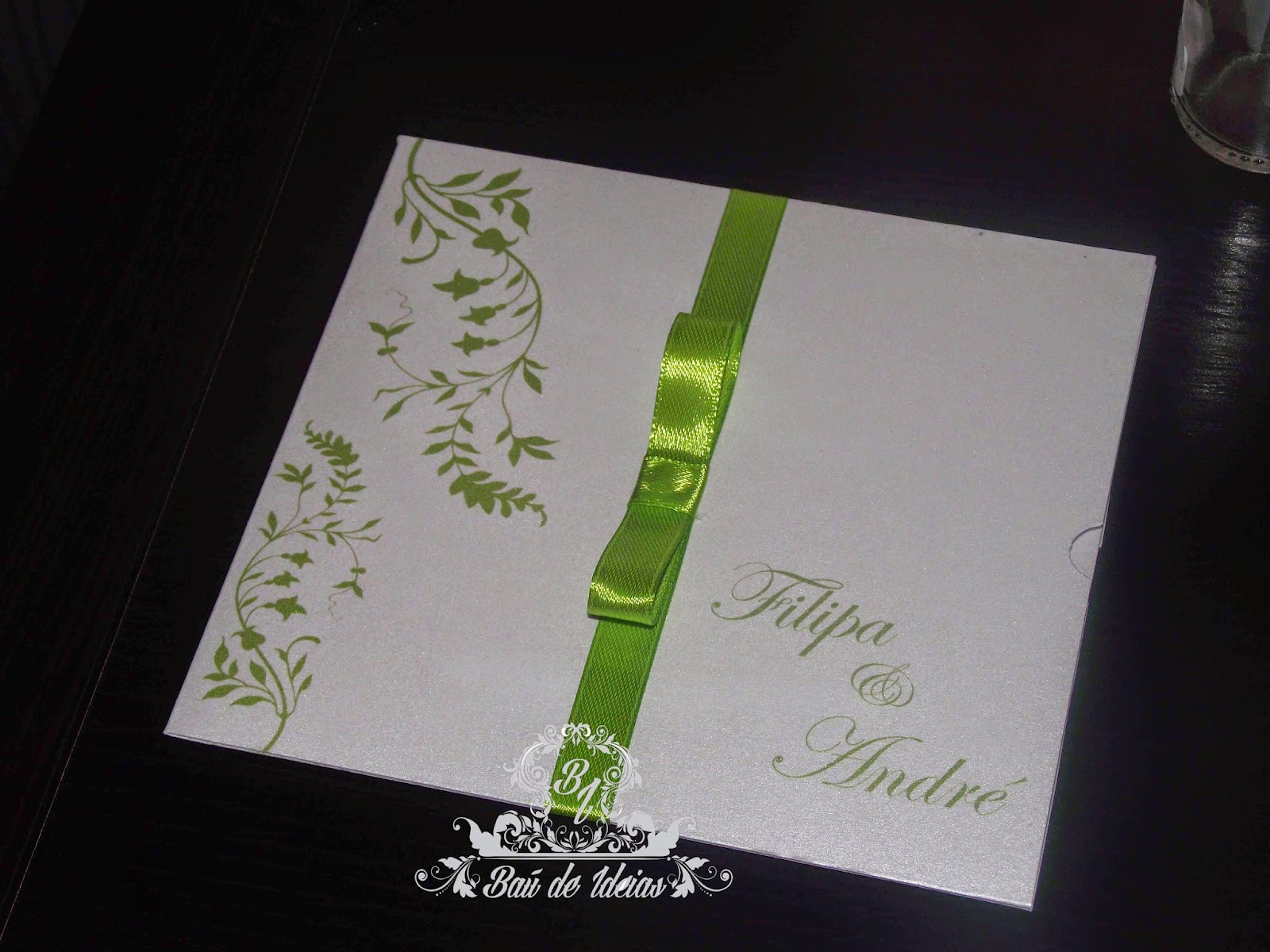 Convite de Casamento quadrado, branco e verde. Pode ser feito noutras cores.