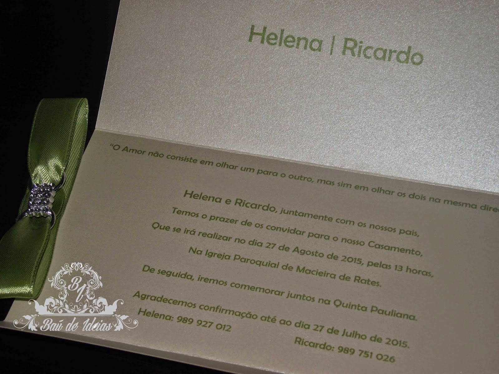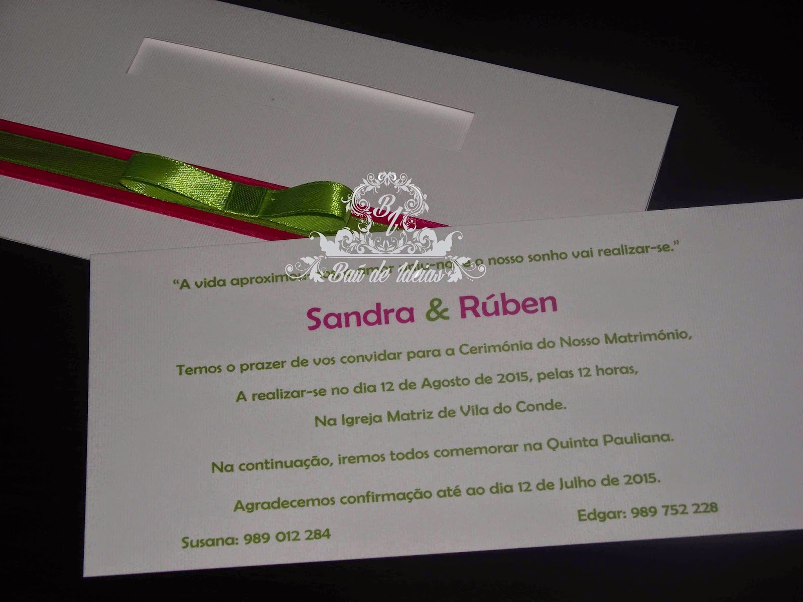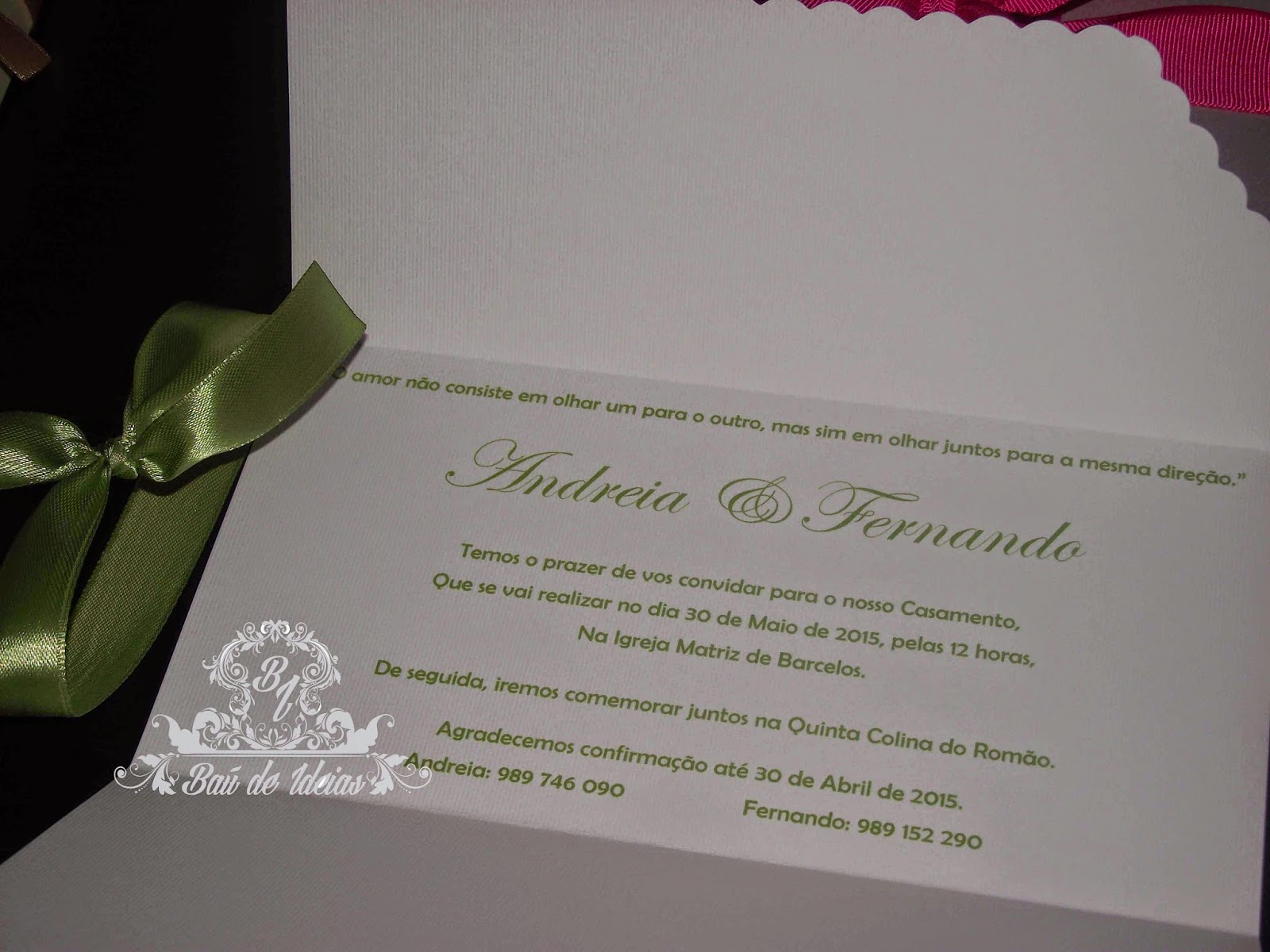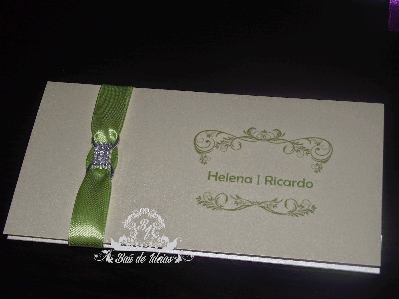 Convite de Casamento quadrado, branco e verde. Pode ser feito noutras cores.