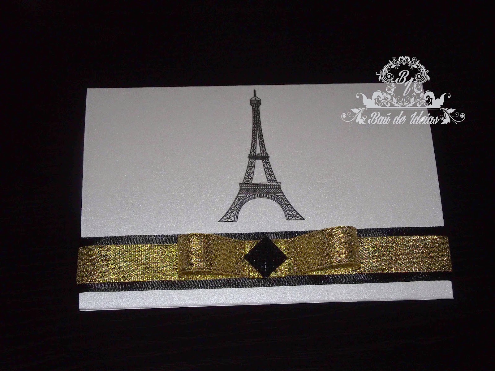 Convite de Casamento dourado, preto e branco, em papel com relevo.