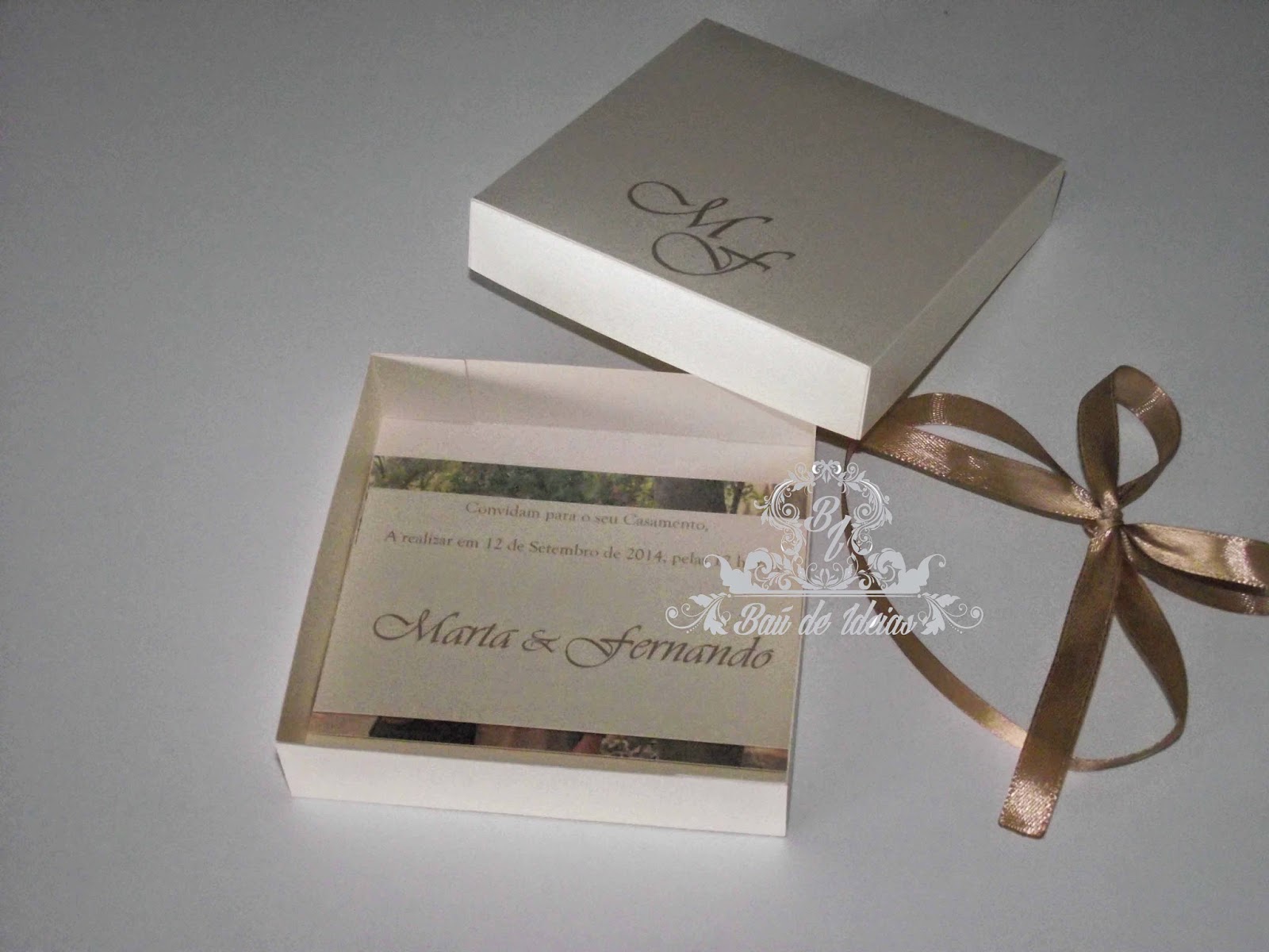 Caixa com convite. Excelente opção para convite aos Pais e Padrinhos de Casamento.