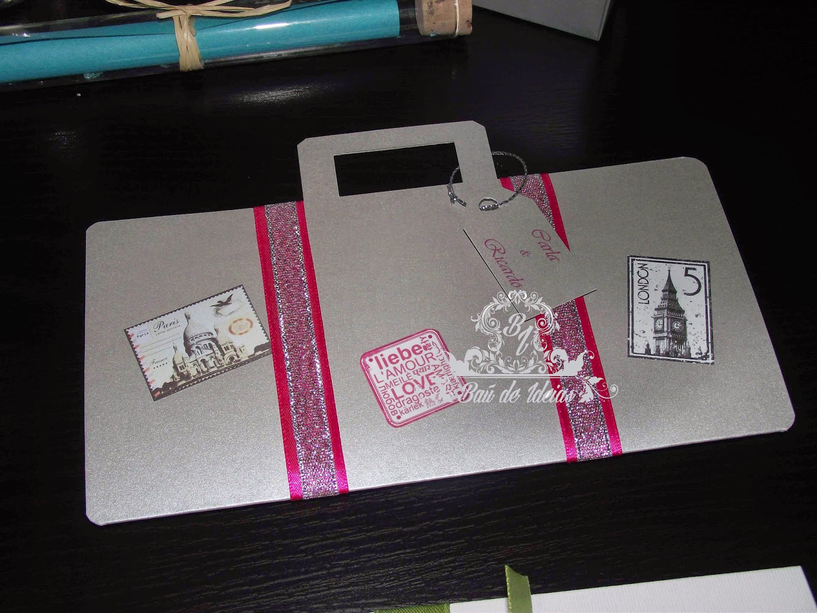 Convite de Casamento tema Viagens, em forma de mala de viagem.