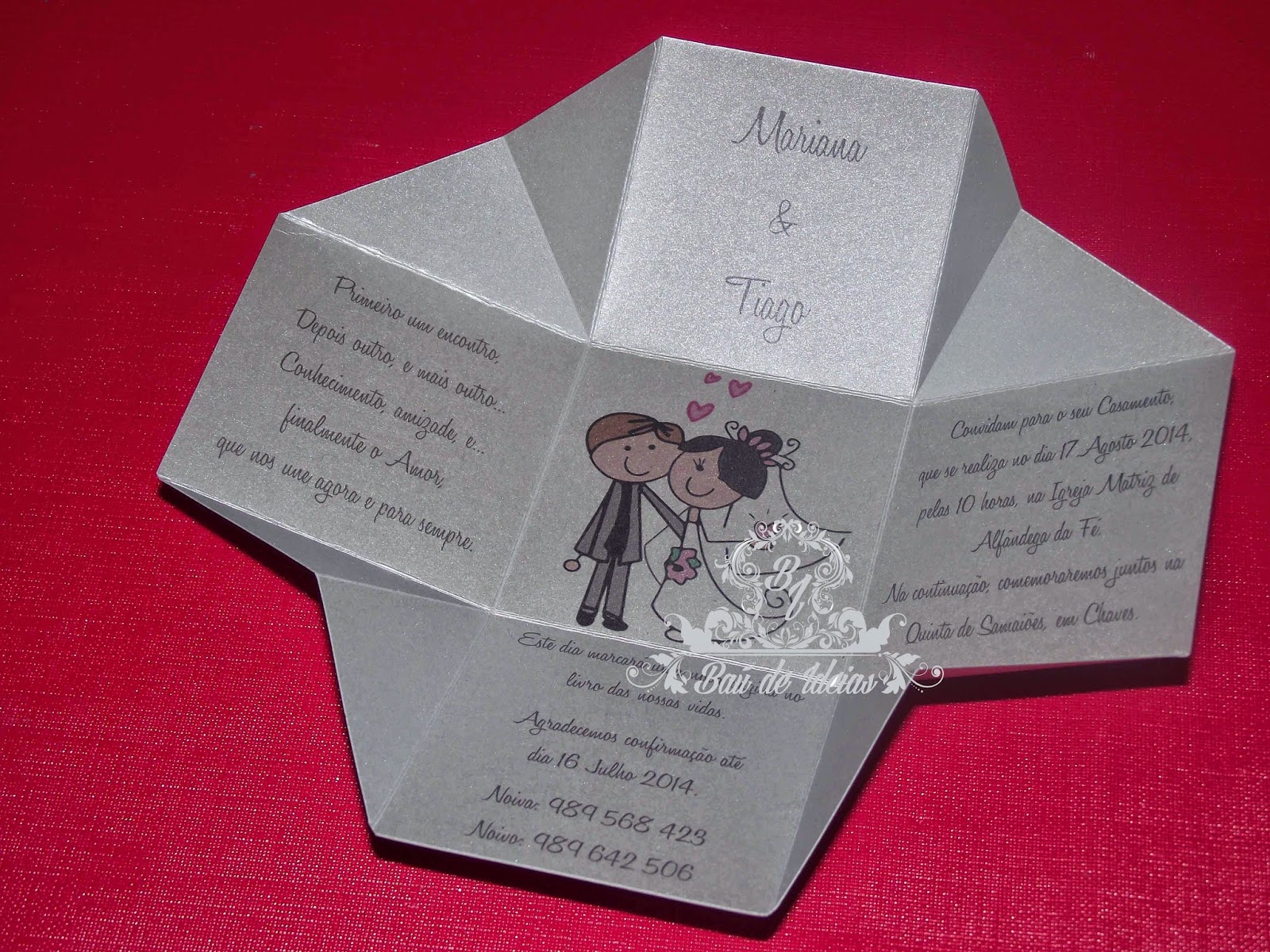 Envelope com fato de Noivo ou vestido de Noiva com convite de Casamento. Tema Disney.