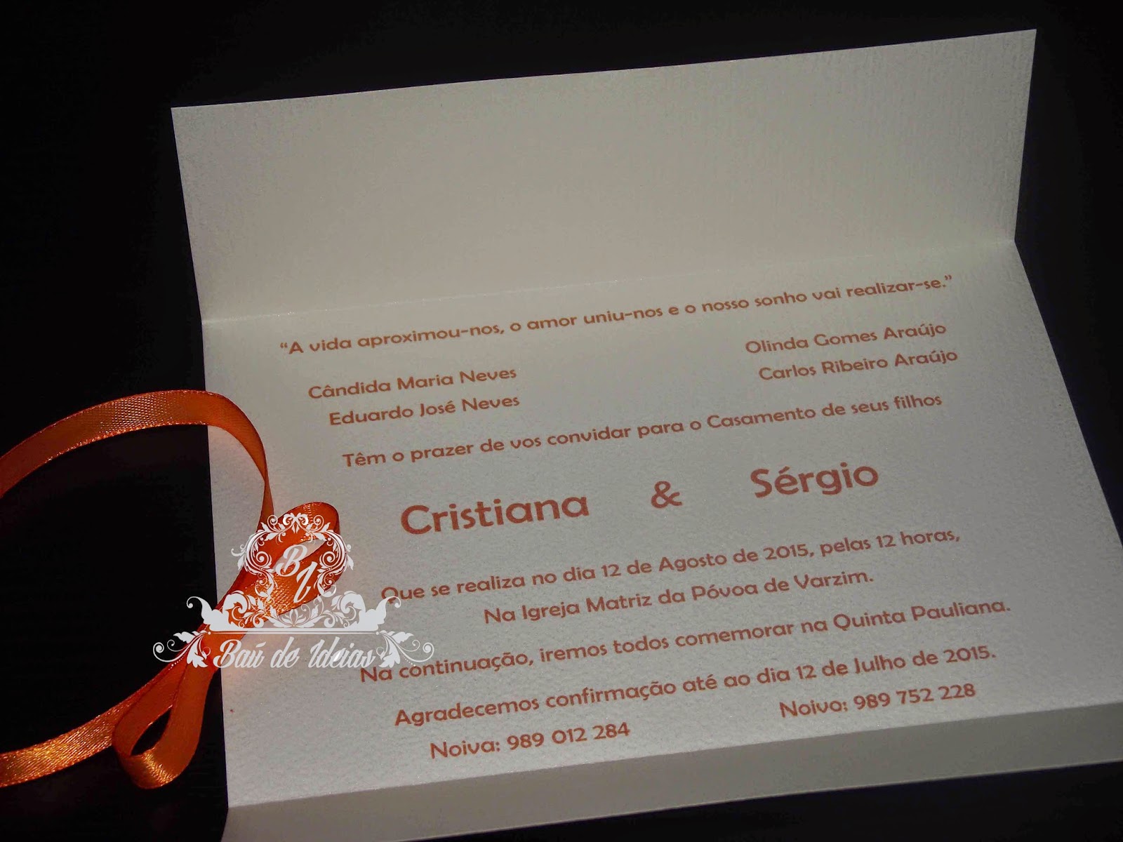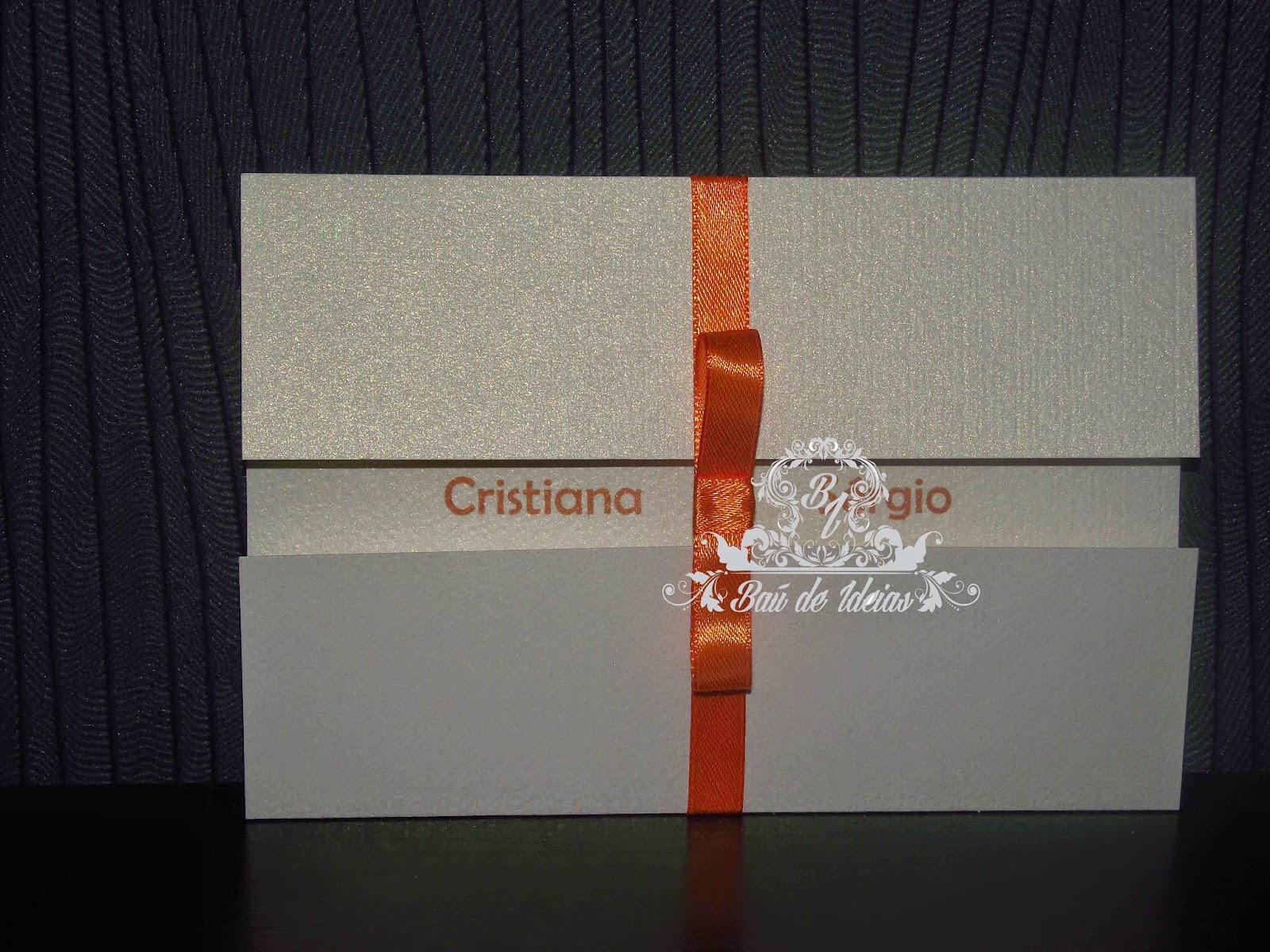 Convite de Casamento em tons de bege e laranja com abertura ao centro com nomes dos noivos. Pode ser feito nas cores que pretender.