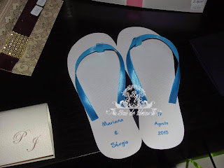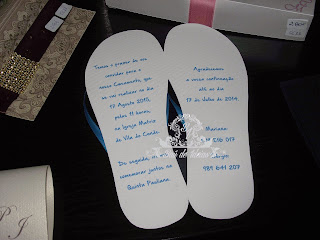Convite de Casamento em forma de chinelo (par de chinelos). Envelope opcional.