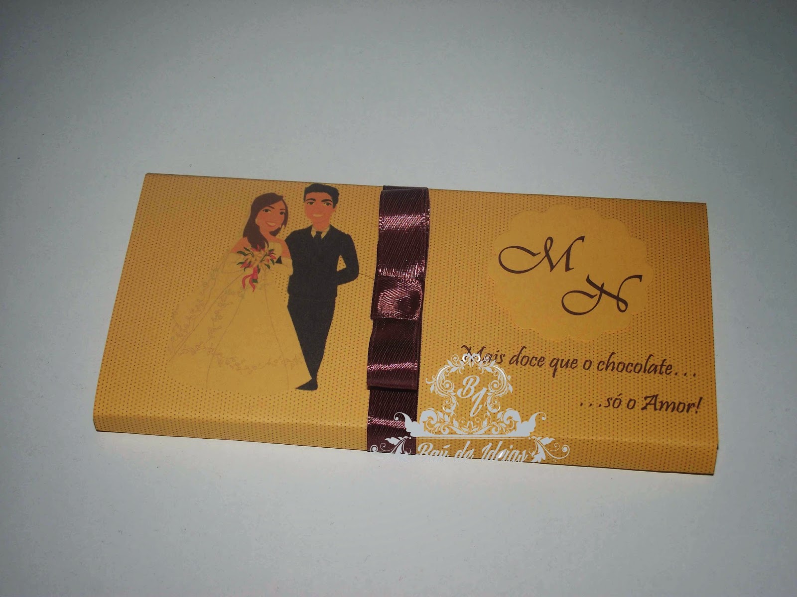 Tablete de chocolate com convite de Casamento. Tema de Casamento Chocolate.