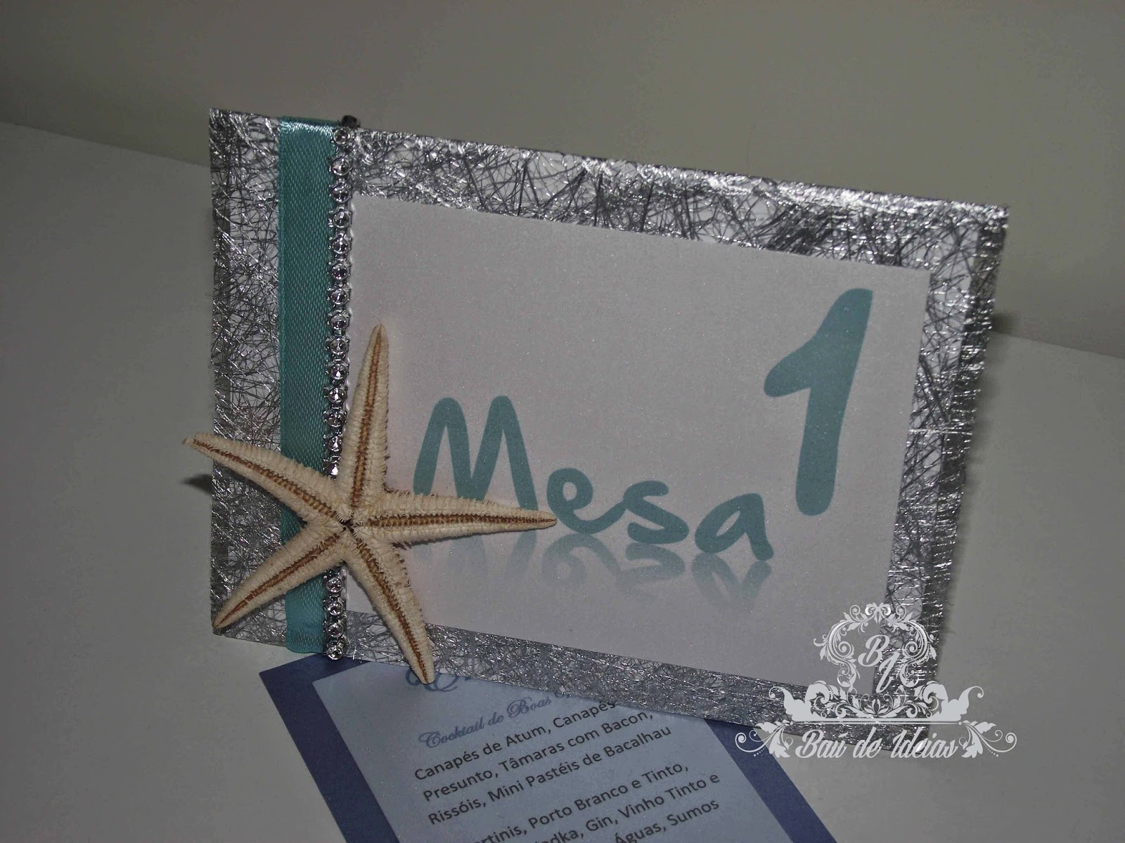 Marcador de Mesas forrado com sizoflor para tema de Casamento Mar/Praias.