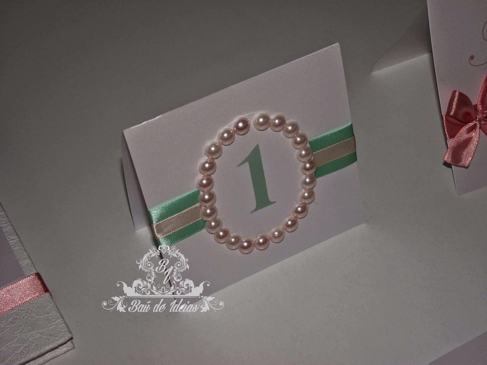 Marcador de Mesa com pérolas.
