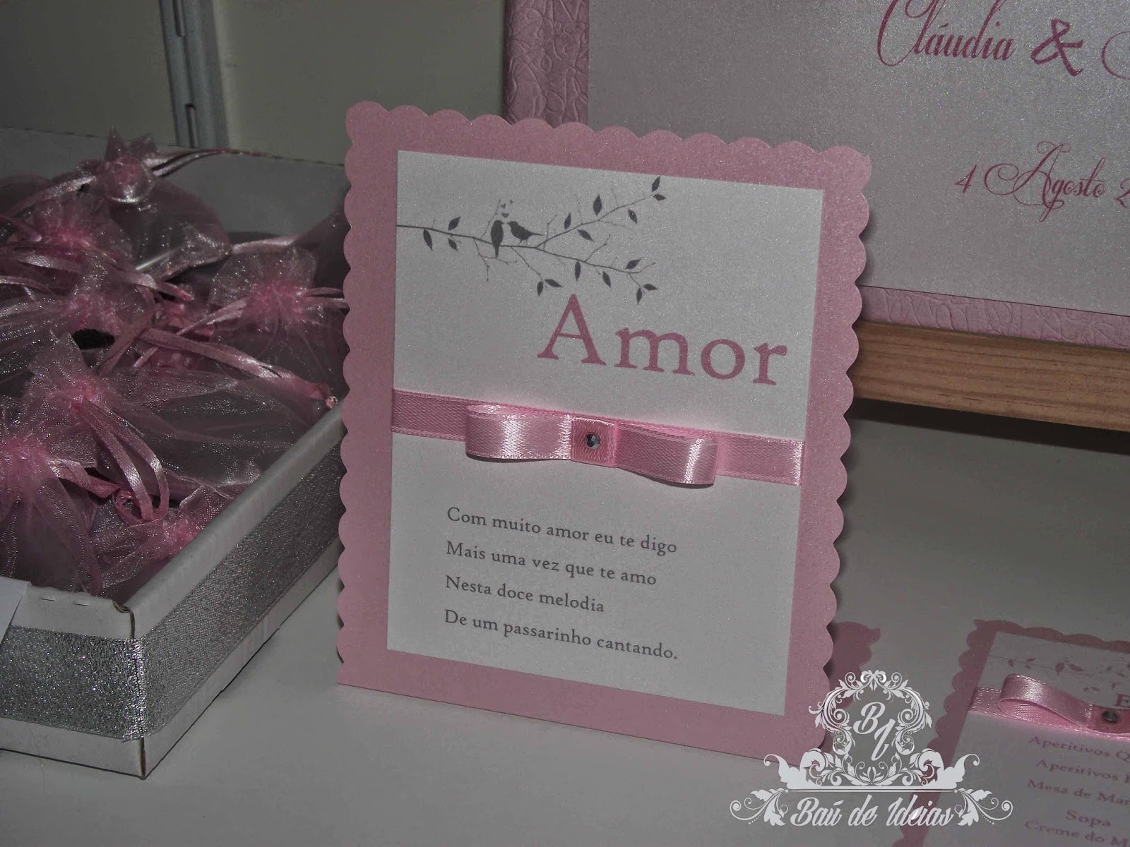 Marcador de Mesa Love Birds. Pode ser feito noutras cores e para outros temas de Casamento.