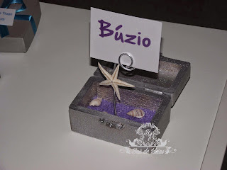 Marcador de Mesa em baú de madeira para o tema Mar/Praias.